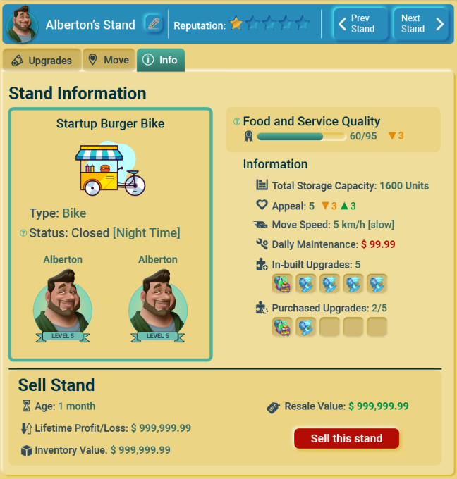 Efficiency is critical, and that’s why we’ve combined the info section with the sell stand function.