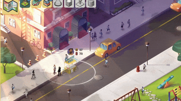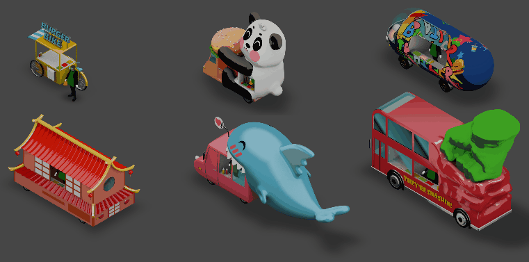 Before, we had workers stationed outside all stands, regardless of context. This broke the immersion we were striving for. Now, except for the burger bike stand, you’ll find all workers properly placed inside their vehicles while serving.