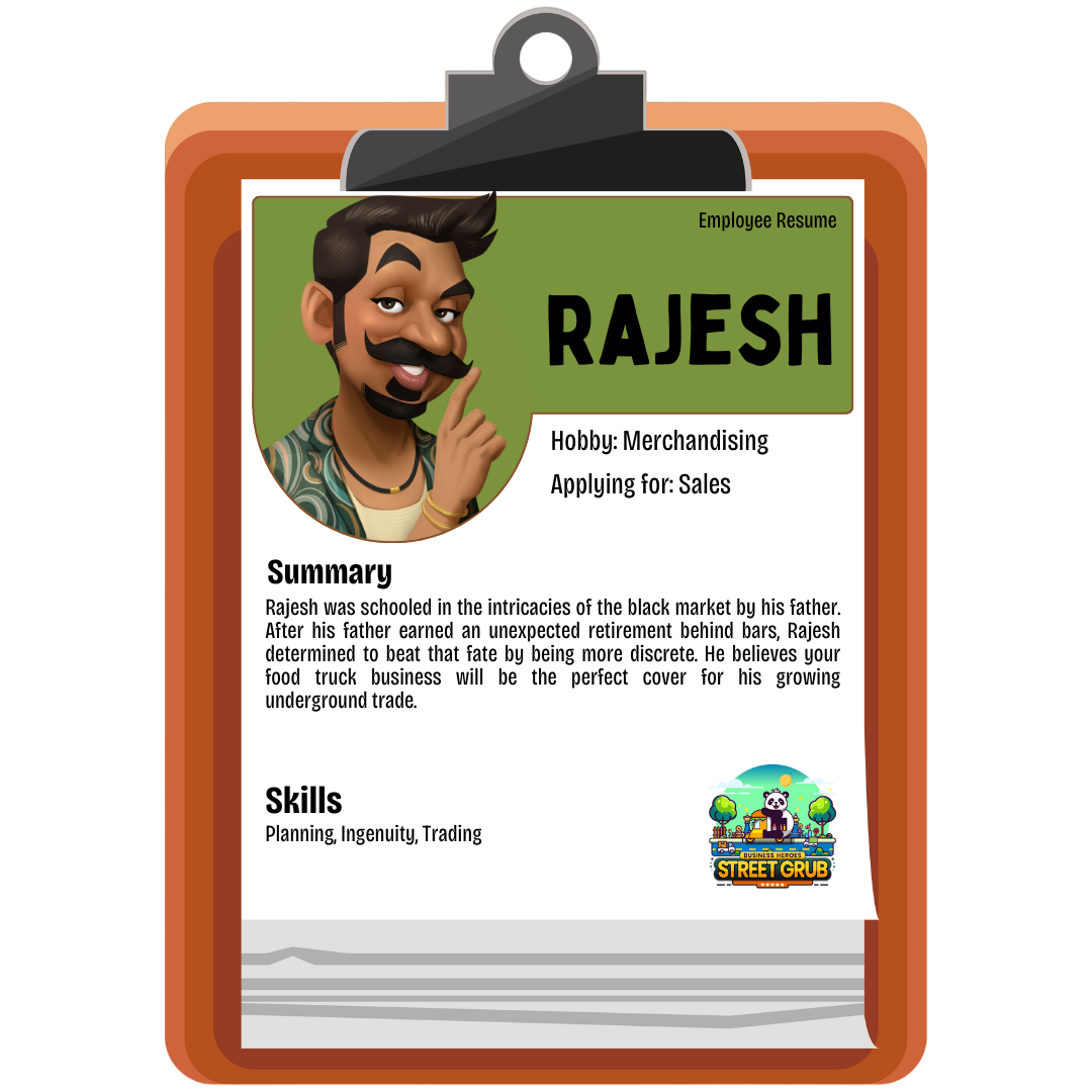 Keeping the introductions rolling, this week’s spotlight is on Rajesh, another potential worker in your food truck business.