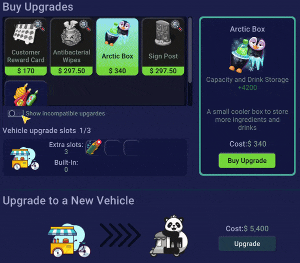 So, we rolled out more tooltips across the vehicle upgrades, customer feedback, and recipe management sections. Now, when you hover over an option, you’ll receive immediate, clear insights.