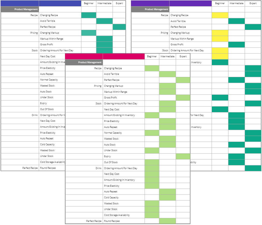 The first thing we did was to rethink the product management process flow. Initially, we had three management screens—one for your recipe and pricing, another for burger inventory and ordering, and a third for drinks inventory and ordering. 📋