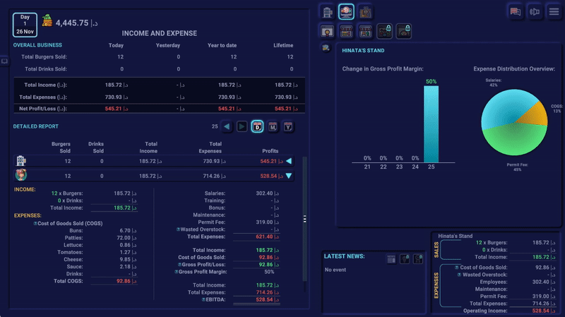 Also, just like real businesses, the game requires demand forecasting by considering sales data, weather, and location to determine daily stock levels.